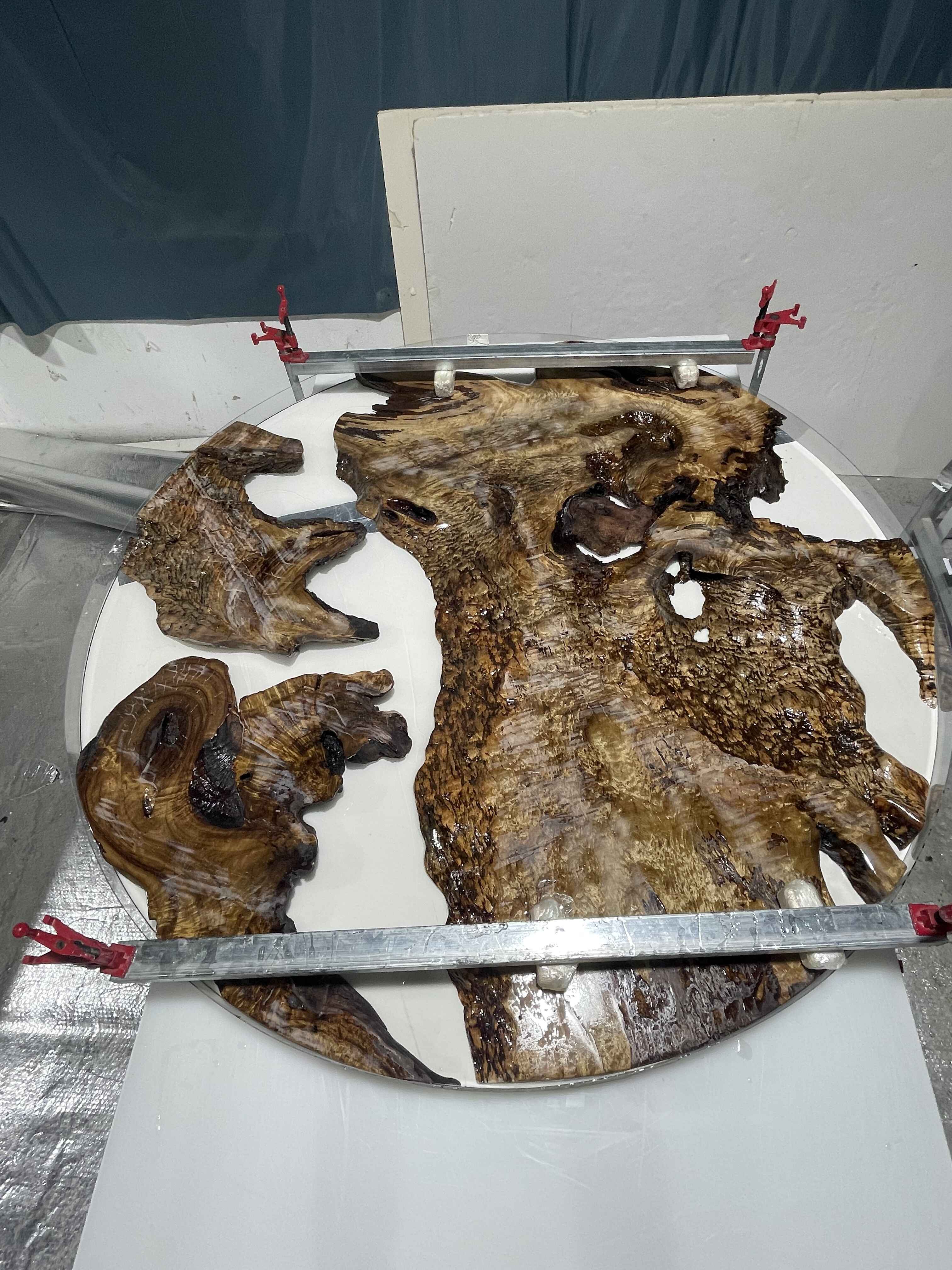 Customizable resin tables with various wood types, shapes, and sizes, available in any resin color. Perfect for dining tables, conference tables, coffee tables, kitchen countertops, bar tops, side tables, and bathroom vanities.