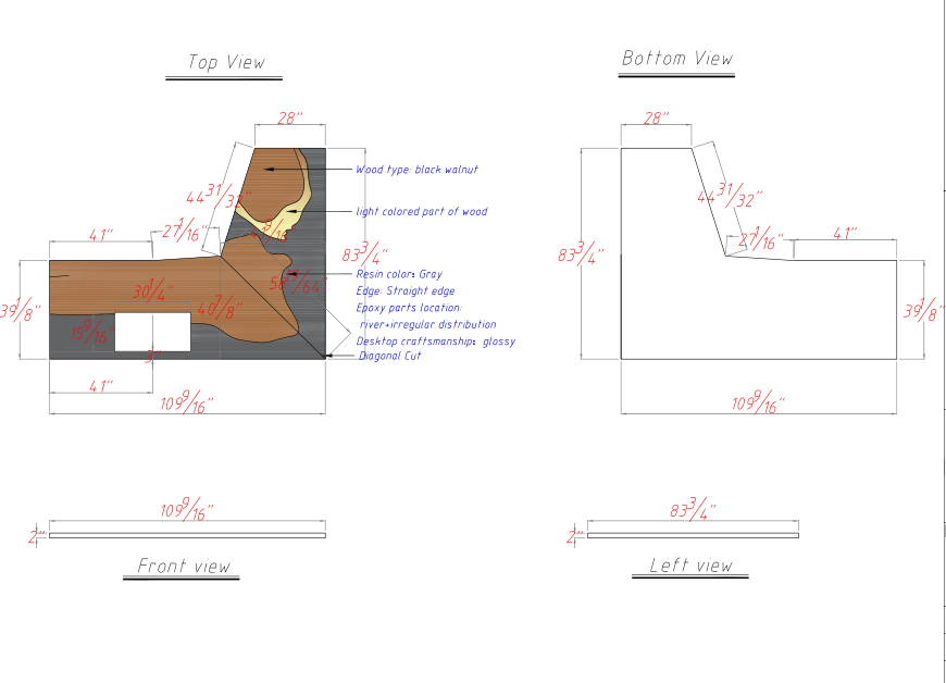 After confirming your order, we will match you with wood slabs that meet your specifications, and the CAD drawings will be sent to you within 24-48 hours.