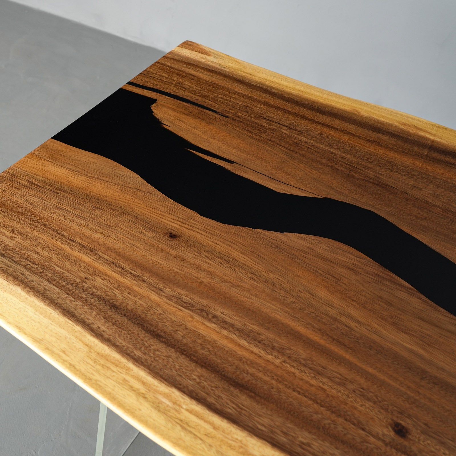 Each tabletop is handcrafted by skilled artisans using industry-leading epoxy resin techniques, ensuring outstanding clarity, durability, and a perfectly leveled high-gloss finish. The combination of live-edge Walnut and black resin creates a striking contrast, ideal for homeowners, designers, and commercial spaces seeking a one-of-a-kind statement furniture piece.