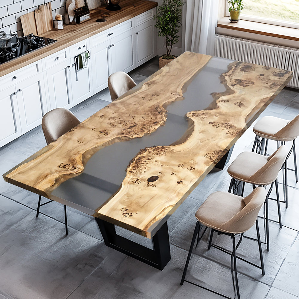 Custom Epoxy Resin Office Desk, perfect for adding elegance and creativity to your workspace. Customize the shape, size, resin color, and transparency, and choose from unique designs like resin river tabletops or waterfall edge styles. Whether you prefer a vibrant epoxy river or a subtle, clear resin look, each desk is crafted to your specifications, blending functionality with artistic appeal for a standout office centerpiece.