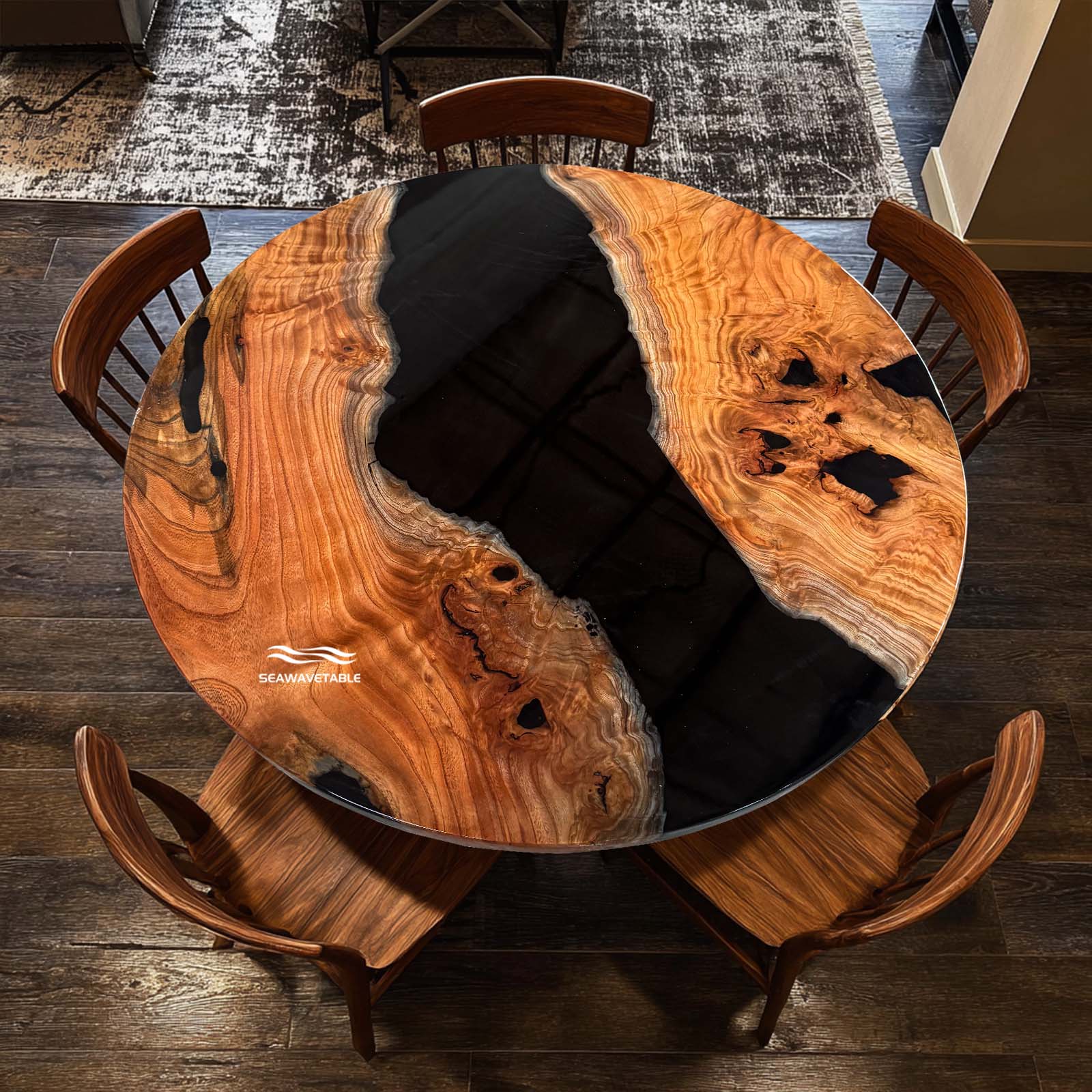 Seawavetable-Luxury Round Dining Table with Transparent Black Resin Panels