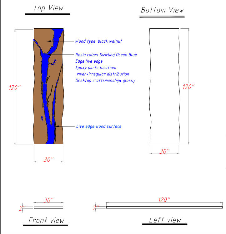 After confirming your order, we will match you with wood slabs that meet your specifications, and the CAD drawings will be sent to you within 24-48 hours.