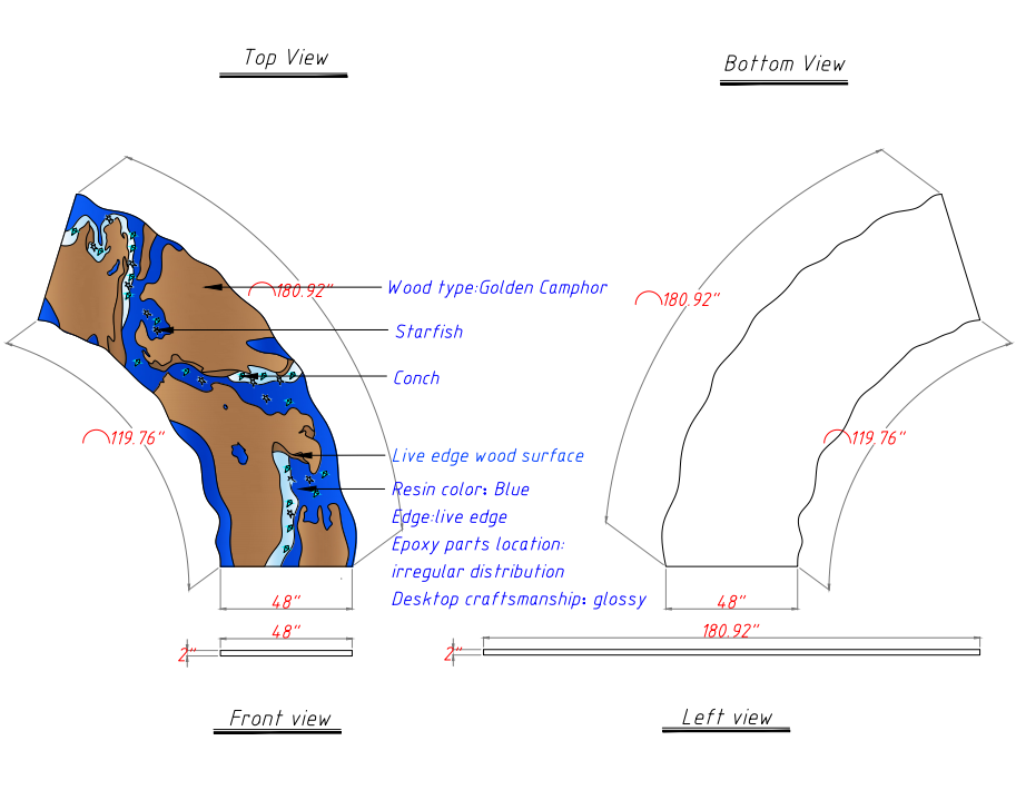 After confirming your order, we will match you with wood slabs that meet your specifications, and the CAD drawings will be sent to you within 24-48 hours.