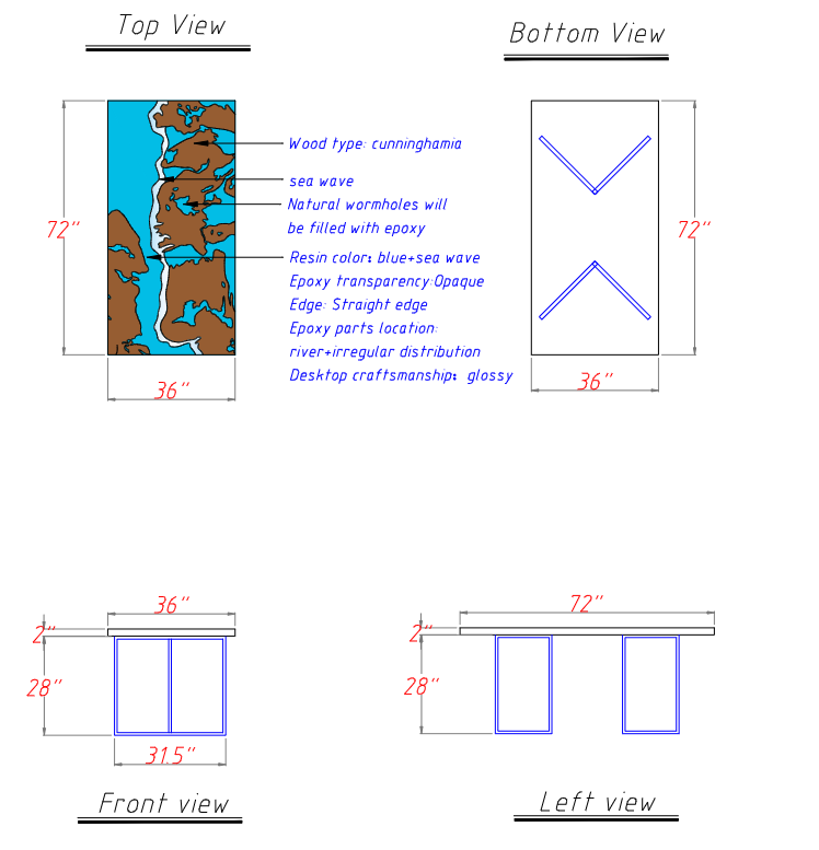 After confirming your order, we will match you with wood slabs that meet your specifications, and the CAD drawings will be sent to you within 24-48 hours.