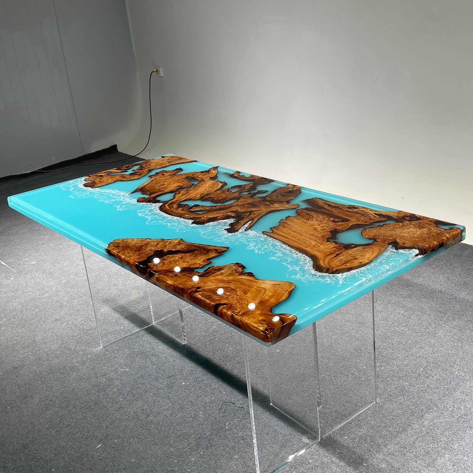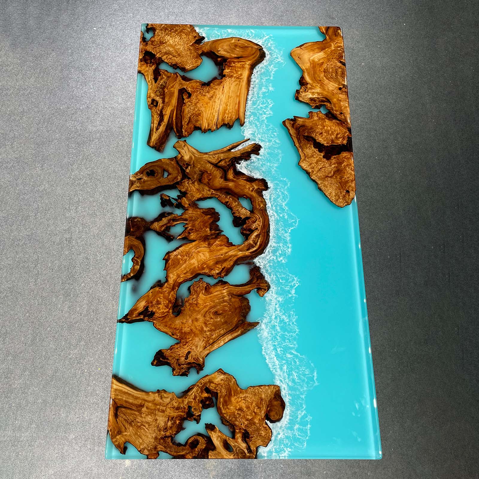 At Seawavetable, we believe in personalization. You can choose from a wide selection of wood types—including walnut, black walnut, olive, golden camphor, poplar, or Cunninghamia wood—to create a table that perfectly suits your style. The resin color is fully customizable: select from our popular palette or provide your own color sample to achieve the look you envision. The tabletop shape is flexible, with options such as rectangular, round, square, or oval, while the edge can be tailored to your taste: straight, live edge, chamfered, C-shaped, or beveled on all sides.