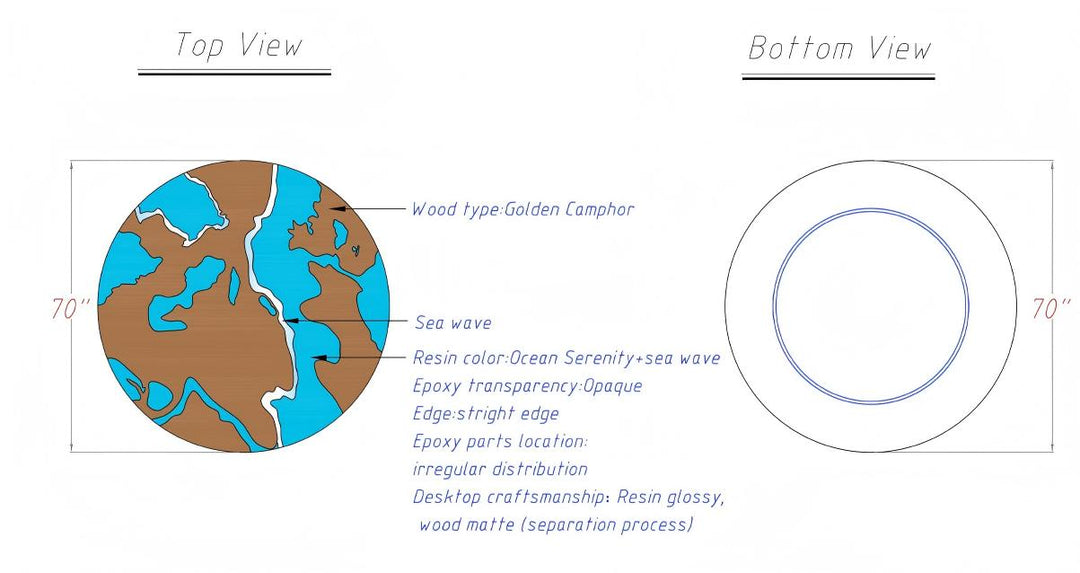 We are committed to preserving every knot, crack, and natural mark in the wood to showcase its authenticity and beauty, while avoiding excessive design elements. Ultimately, the most beautiful designs are shaped by time and nature. Therefore, the final product will not only retain the elements from the reference image (such as waves and broken islands) but also incorporate its own unique features, making each piece special and one-of-a-kind.